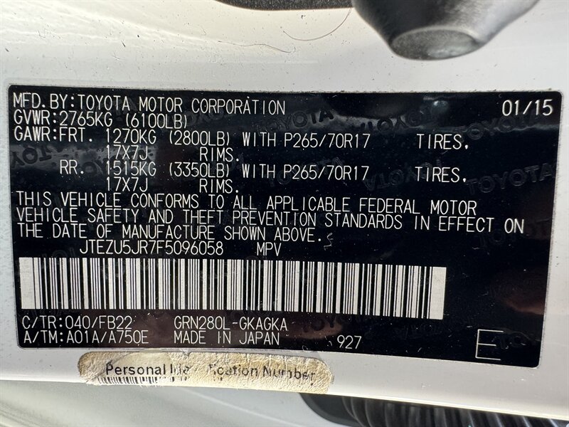 The 2015 Toyota 4Runner SR5 is a rugged yet refined SUV, equipped with a robust 4.0L V6 engine that delivers 270 horsepower and 278 lb-ft of torque, ensuring a capable performance on and off the road. This model features a spacious and versatile interior, accommodating up to five passengers with ample cargo space. Standard amenities include a touchscreen infotainment system with Bluetooth connectivity, a rearview camera, and a power-adjustable driver's seat for added comfort. The 4Runner also comes with keyless entry, tri-zone automatic climate control, and a premium sound system for an enhanced driving experience. With a clean CARFAX report and in excellent overall condition, this vehicle is ready for your next adventure.