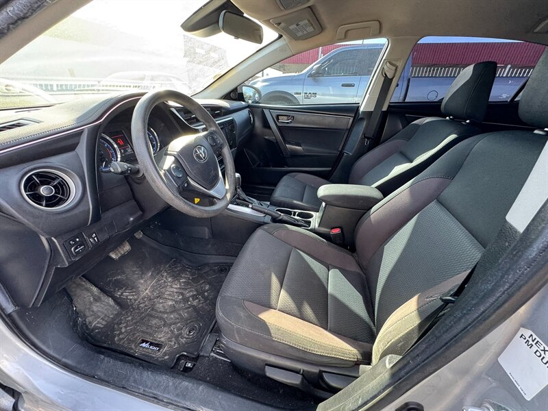 2018 Toyota Corolla LE powered by a 1.8L I4 producing 132 hp and 128 lb-ft of torque, paired with a continuously variable transmission (CVT). Factory-standard features include cloth upholstery with a 60/40 split-folding rear seat, manually adjustable driver’s seat, manual air conditioning, power windows and door locks, remote keyless entry, cruise control, a tilt/telescoping steering wheel with audio and phone controls, Entune audio with touchscreen, Bluetooth hands-free, USB input and a six-speaker system, rearview camera, and standard safety equipment such as front, side and curtain airbags, ABS, electronic stability control, traction control and tire-pressure monitoring. This vehicle is in excellent overall condition and has a clean CARFAX report.