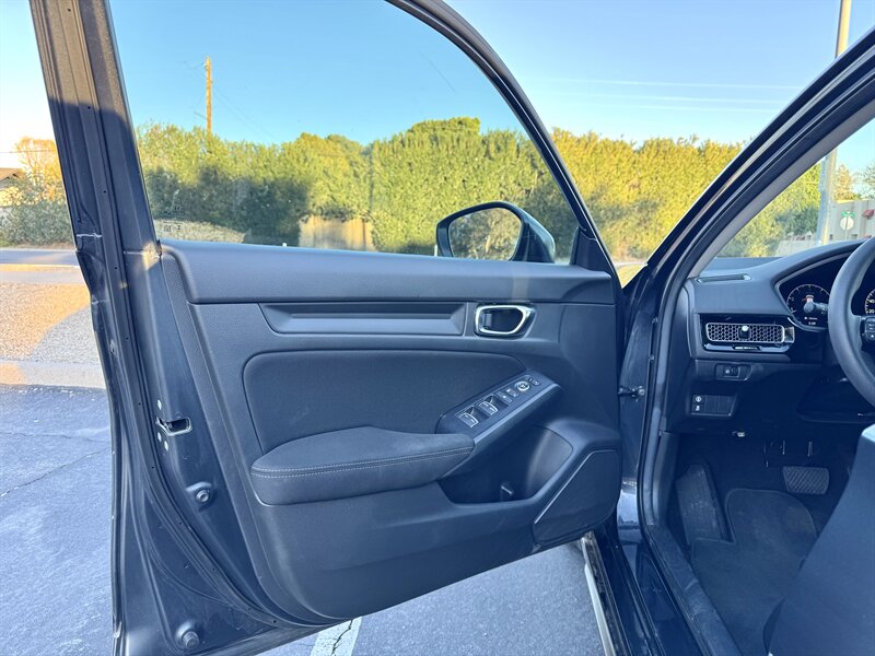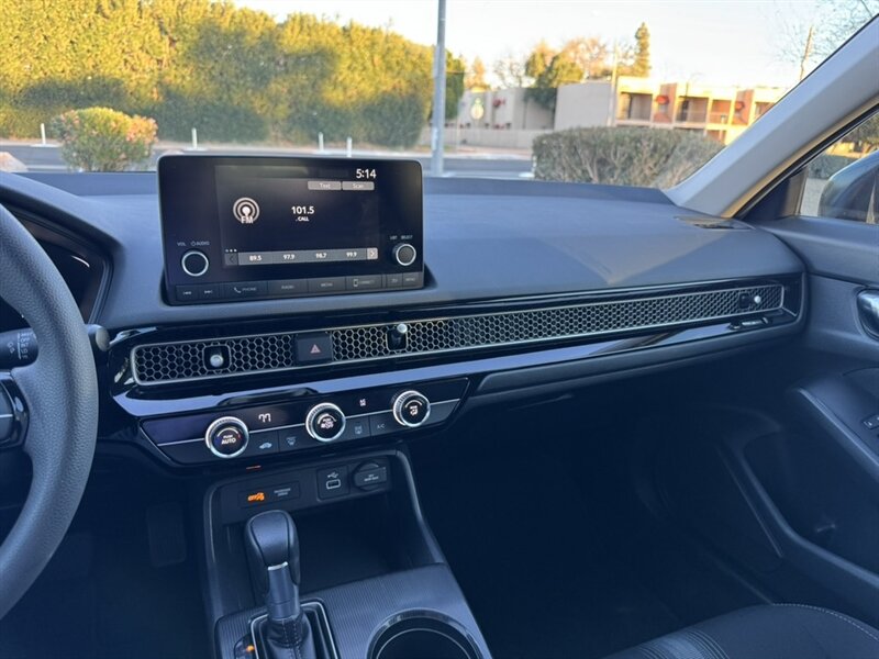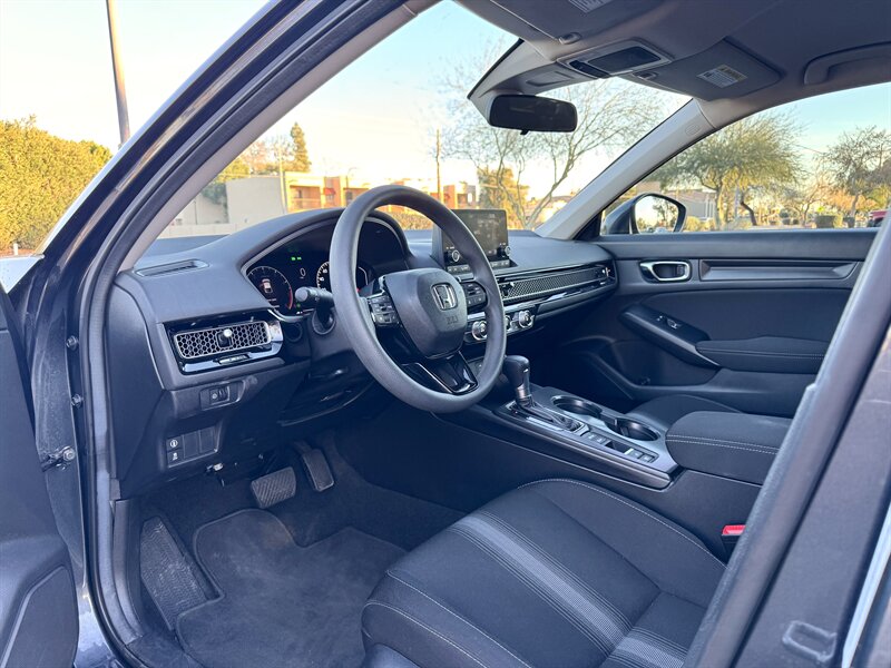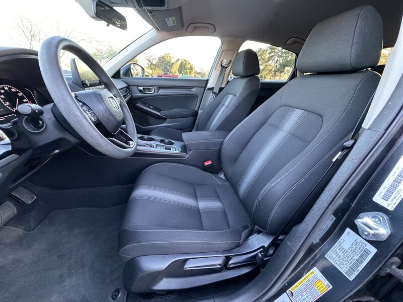 2024 Honda Civic LX powered by a 2.0L I4 producing 158 hp and 138 lb-ft, paired with a continuously variable transmission (CVT) and front-wheel drive. Factory equipment includes the Honda Sensing® driver-assist suite (adaptive cruise control, collision mitigation braking, lane keeping assist and road-departure mitigation), a center touchscreen infotainment system with Apple CarPlay and Android Auto compatibility, Bluetooth and USB connectivity, cloth seating, power windows and locks, remote keyless entry, cruise control and a multi-function steering wheel. Standard safety and convenience features include ABS, stability and traction control, a multi-airbag system and a rearview camera. This vehicle has under 24,000 miles (averaging less than 8,000 miles per year) and is in excellent overall condition.